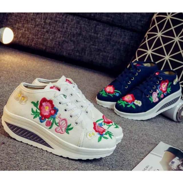 スニーカー レディースシューズ 中華風パンプス運動靴ウォーキングシューズ婦人靴インヒール花柄エスニック風ハンドメイド厚底 刺繍 履きやすい全店二点送料無料