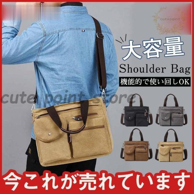 バッグ メンズ キャンバスバッグ ショルダーバッグ 大容量 2wayバッグ 便利 帆布 通勤 通学 学生 肩掛け 手持ち