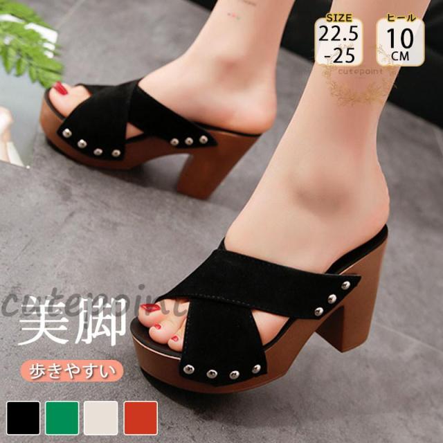 厚底 サンダル レディース 軽量 ウェッジソール ミュールサンダル オープントゥ 脚長効果 靴 砂浜 アウトドア 撮影 カジュアル PU 美脚