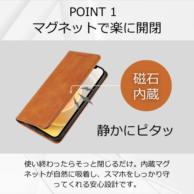 マグネット機能:マグネットで開閉可能