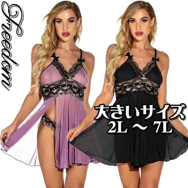 大きいサイズ 女性用 男性用 女装 コスプレ 衣装 スリット使いベビードール&Tショーツのセットアップセクシーランジェリー 2L 3L 4L 5L 6L 7L サイズ セール