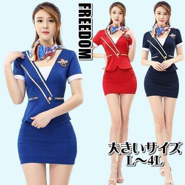 大きいサイズ コスプレ 衣装 キャビンアテンダント CA お仕事制服人気ナンバーワンのスカーフ付きスチュワーデスコスチューム L 2L 3L 4L サイズ セール