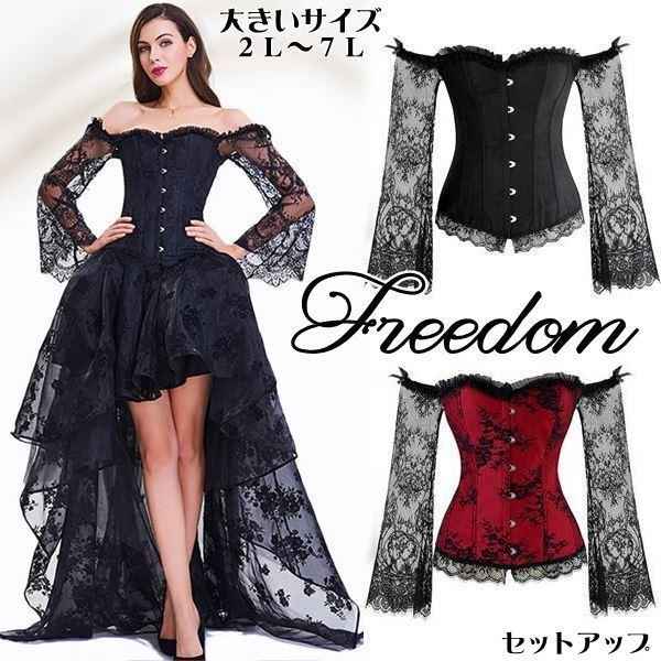 大きいサイズ ゴスロリ 暗黒系 コスプレ 衣装 透け袖ビスチェコルセット&フィッシュテールスカートのセットアップ 2L 3L 4L 5L 6L 7L サイズ セール
