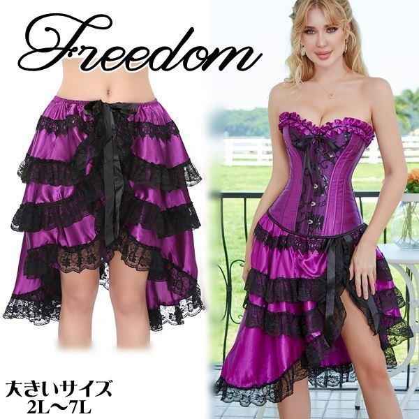 大きいサイズ スカート フィッシュテールスカート コスプレ 衣装 鮮やかパープルカラー×黒レースのティアードスカート単品 2L 3L 4L 5L 6L 7L サイズ セール