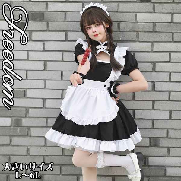 大きいサイズ メイド コスプレ コスチューム 衣装 メイド服 ゴスロリ ロリータ チャイナ襟の中華風フリルエプロンメイド服 L 2L 3L 4L 5L 6L サイズ セール