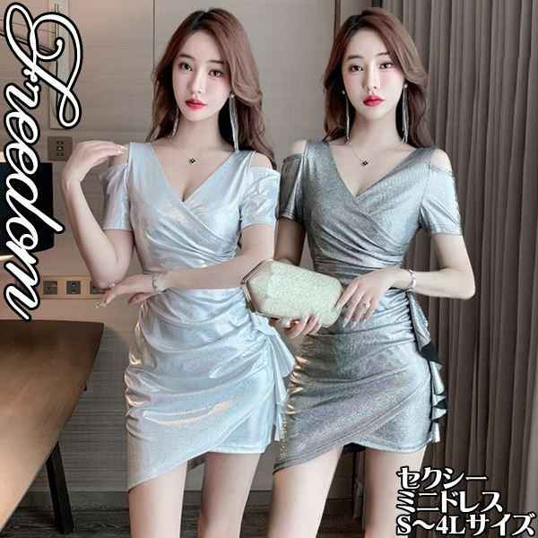 セクシー ワンピ キャバ ドレス キャバドレス コスプレ 衣装 キラキラツヤ感!肩だしボディコン風セクシーミニ丈ドレス S M L 2L 3L 4L サイズ セール