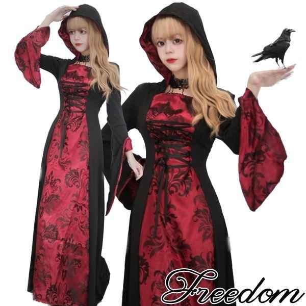 吸血鬼 魔女 ハロウィン コスプレ 衣装 妖しげな雰囲気を醸し出す!フード付きロングワンピースの魔女吸血鬼コスチューム S M L 2L 3L 4L 5L 6L セール