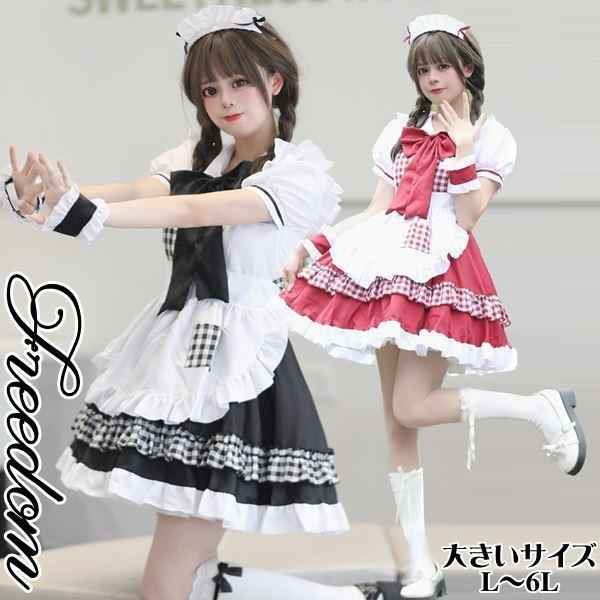 大きいサイズ メイド コスチューム アイドル ハロウィン コスプレ 衣装 可愛いリボン&チェック切り替え!ロリータ系メイド服 L 2L 3L 4L 5L 6L サイズ セール