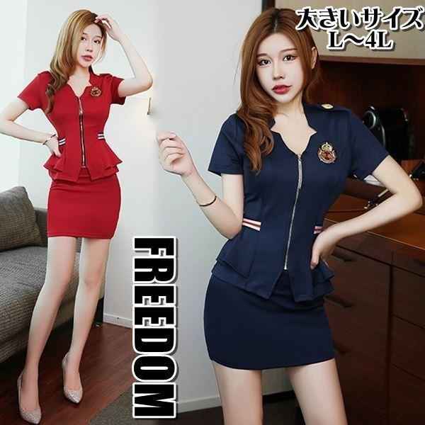 大きいサイズ コスプレ 衣装 キャビンアテンダント CA ぴっちりタイトミニのセクシースタイル♪スチュワーデスコスチューム L 2L 3L 4L サイズ セール