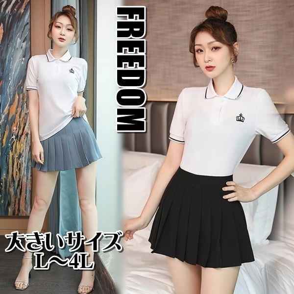 大きいサイズ コスプレ 衣装 学校制服 JK制服 JK 女子高生 ポロシャツ&プリーツミニスカートの学校制服コスチューム L 2L 3L 4L サイズ セール