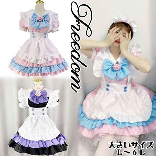 大きいサイズ コスプレ 衣装 メイド エプロン キュートロリータ系!ねこの手モチーフ&リボン使いメイド服コスチューム L 2L 3L 4L 5L 6L サイズ セール