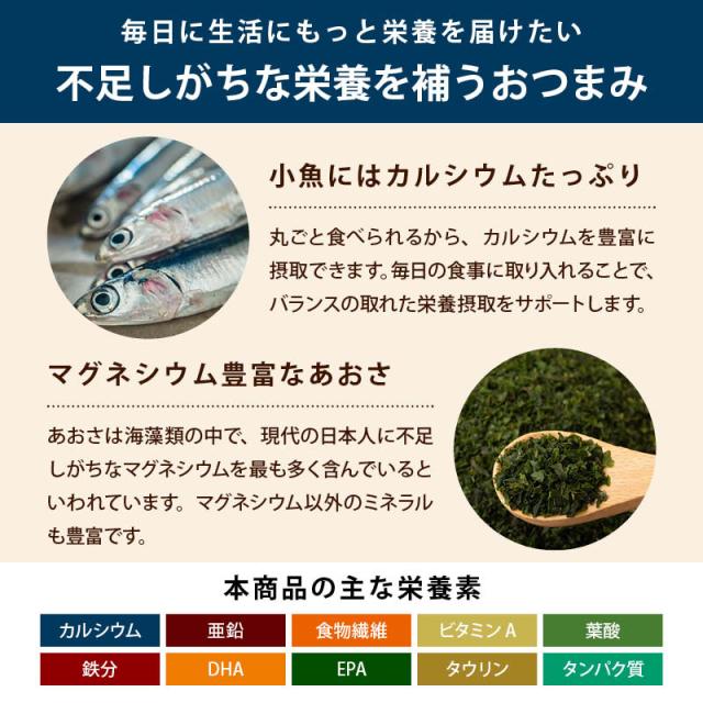 [前田家] あおさ小魚 120g 国産 カルシウム 食物繊維 ミネラル ビタミン 小魚 片口いわし あおさ おやつ おつまみ ビール 栄養補給 カリカリ食感