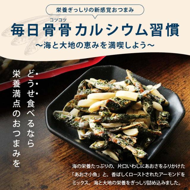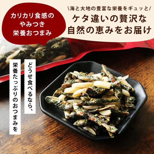 ミネラルやカルシウムがたっぷり含まれた『あおさ小魚 』と、食物繊維や鉄分、ビタミン豊富な『アーモンド』のまさに黄金コンビ。