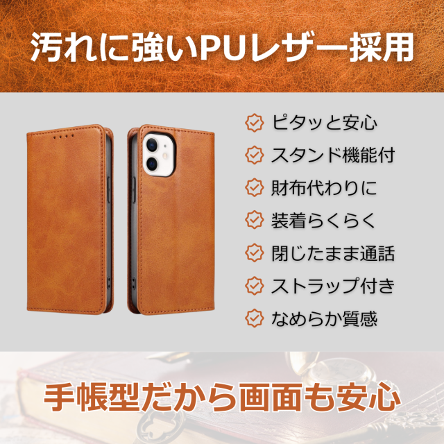 土日祝も発送★送料無料★ 手帳型スマホケース iPhone12mini対応 マグネット開閉&スタンド機能付き