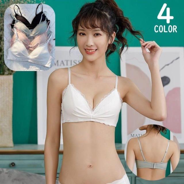 ブラジャー 三角ブラ レディース 下着 ノンワイヤー 美胸 薄手パッド レース スカラップ リボン 蝶結び風 かわいい 通気性