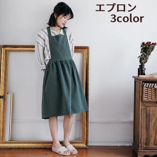 カフェエプロン エプロン ワンピースエプロン キッチン雑貨 レディース 女性 クロスストラップ 膝丈 無地 シンプル カジュアル おしゃれ