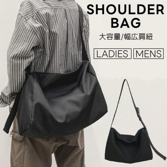 ショルダーバッグ ユニセックス 男女兼用 レディース 女性 メンズ 男性 カバン 鞄 斜め掛け 横長 大容量 大きめ チャック ジッパー 無地 ブラッ