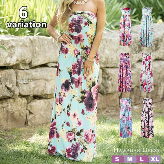 ハワイアンドレス フラドレス フラダンス ハワイアン ムームー ハワイムームー チューブトップドレス マキシワンピース ノースリーブ ロングドレス フ