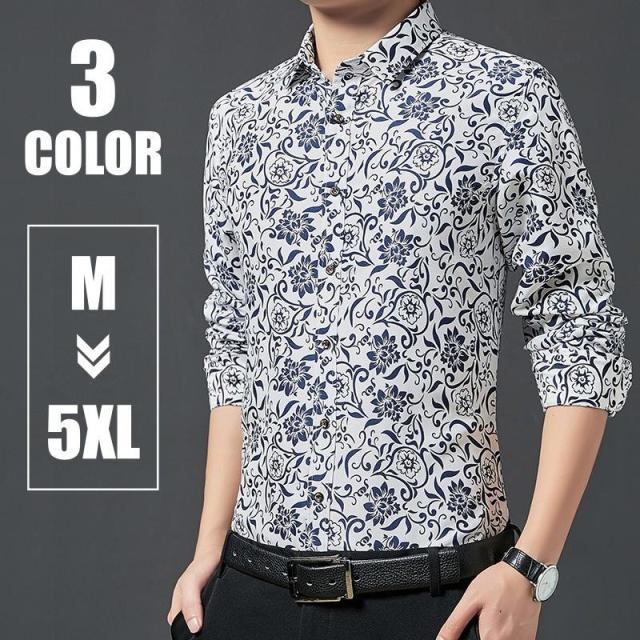 カジュアルシャツ メンズ 大きいサイズあり 長袖 トップス フラワー 派手 個性的 おしゃれ 総柄 かっこいい 花柄 角襟 ボタン 前開き 男性 紳士