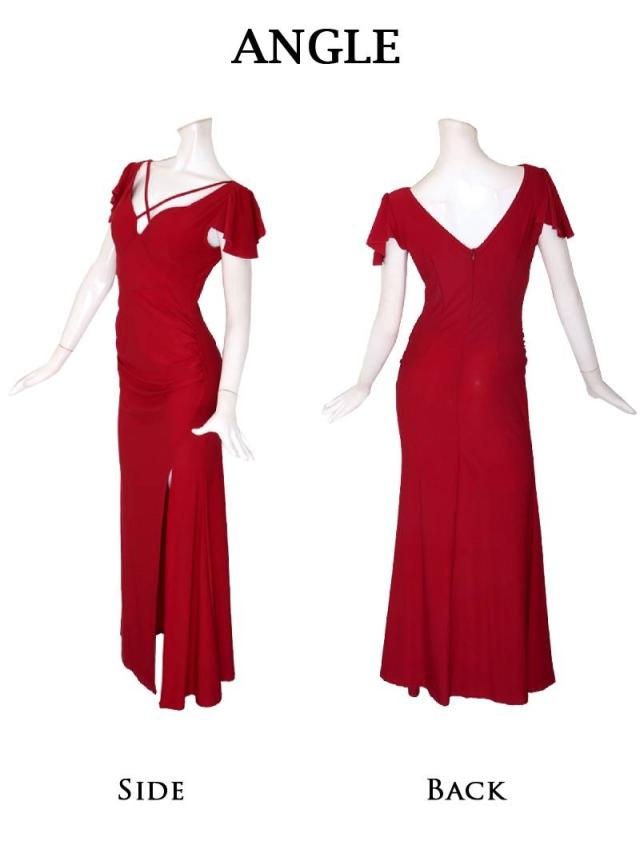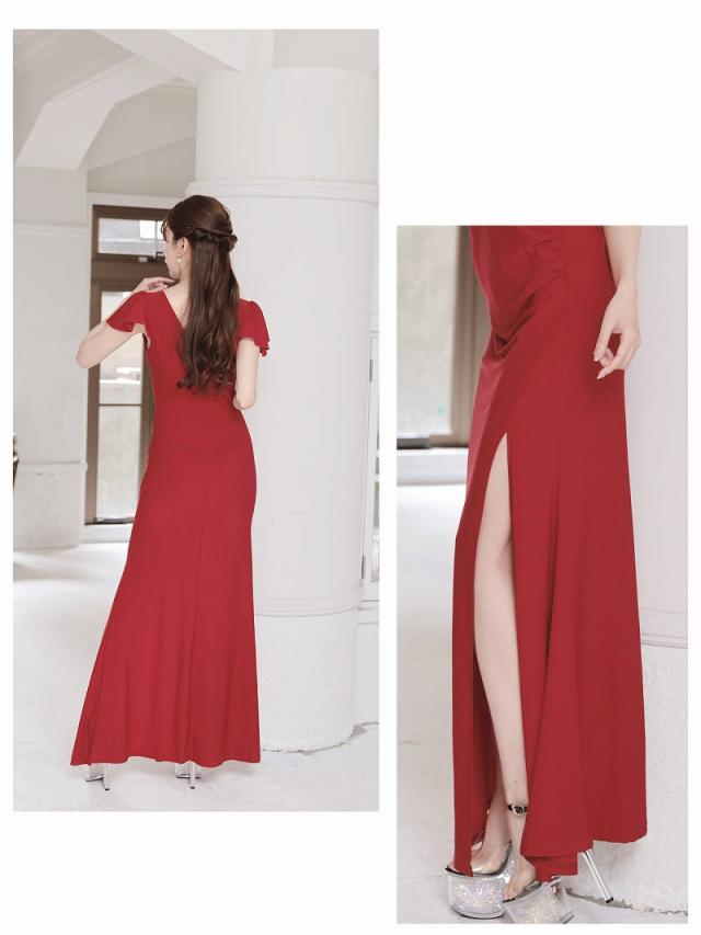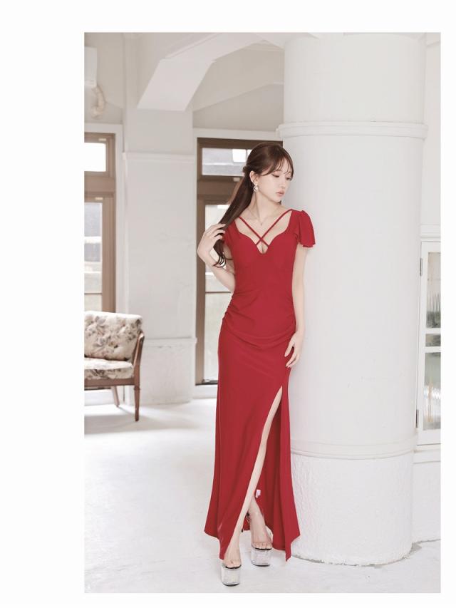 ロングドレス Ryuyu 谷間 セクシー サイドギャザー 袖付き 深スリット キャバ ドレス キャバドレス ロングドレス ロン
