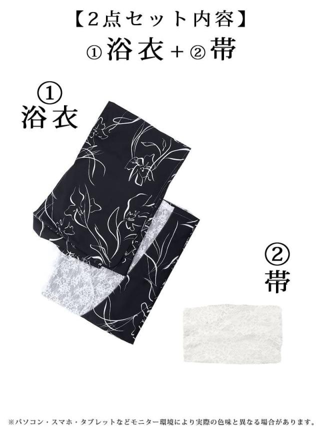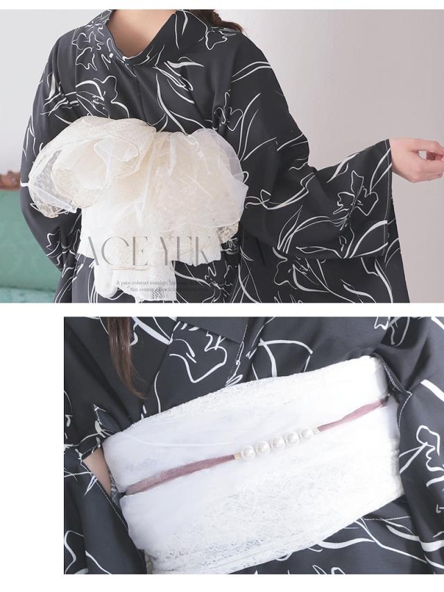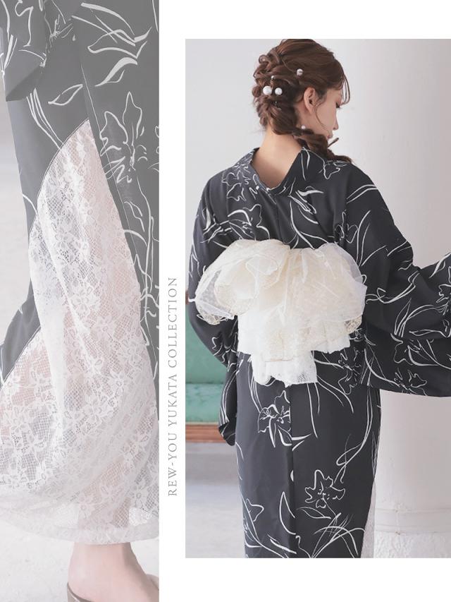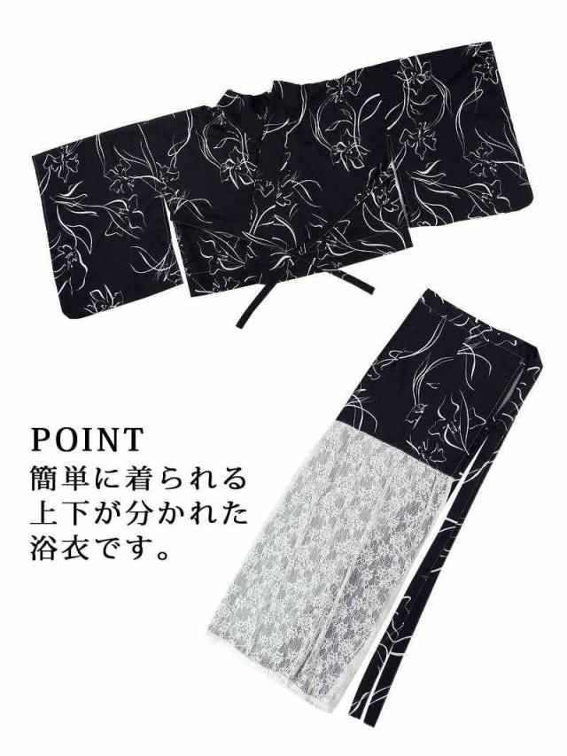 ☆簡単に着用できる二部式浴衣は帯も同じレースを使用しているおしゃれなセパレート浴衣。