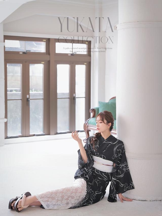 ☆色気を感じさせる黒色とレースの組み合わせで男心をくすぐるレディース浴衣。