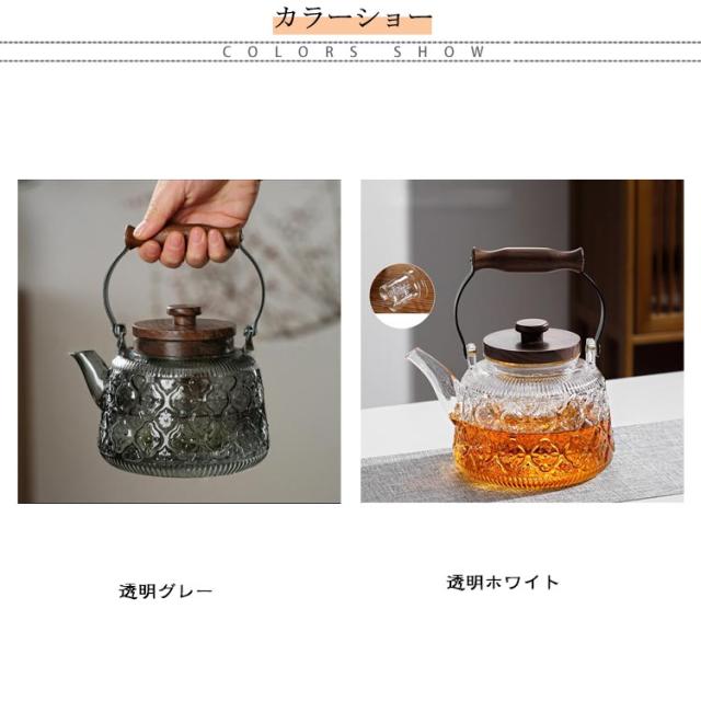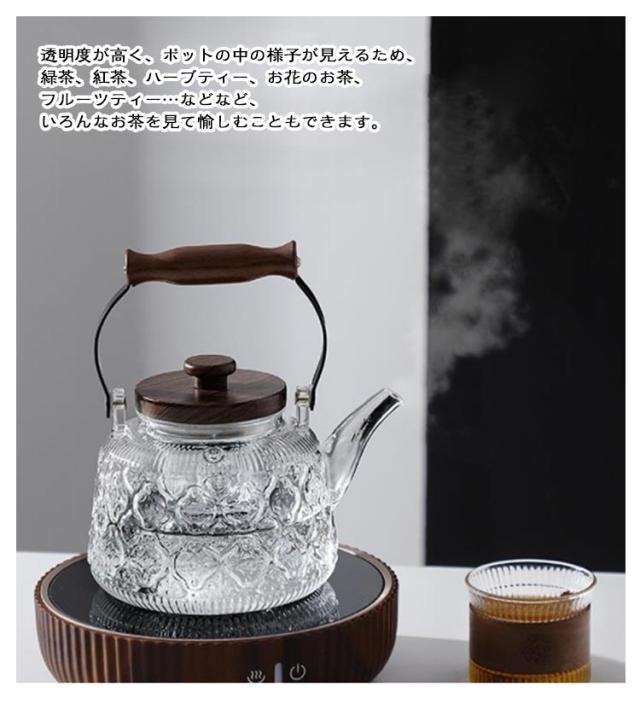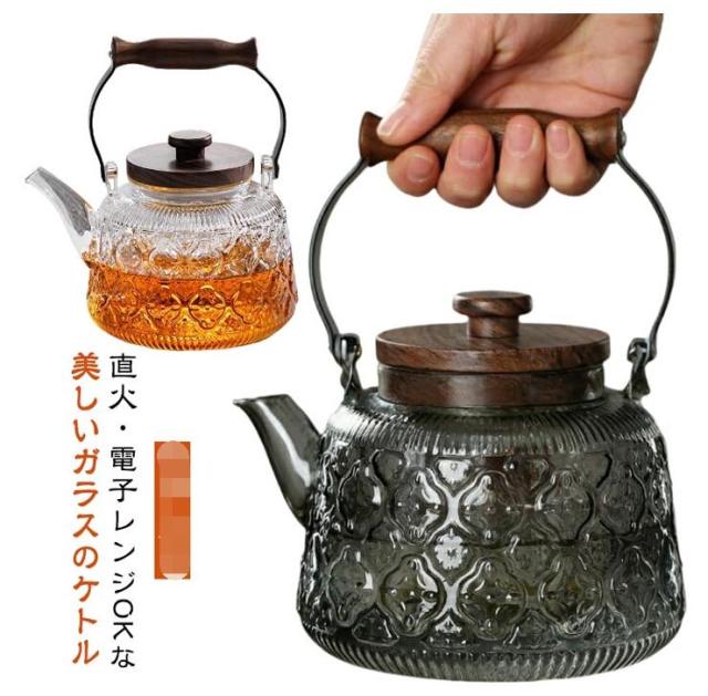 「花海棠」 ガラスケトル 1000ml 1リットル 耐熱 ガラス 直火対応 ティーポットフローラガラス 湯沸かし 手作り おしゃれ ガラスポット ガラスティーポット 大容量 紅茶ポット ガラス急須 フルーツティー 麦茶 花茶 蓋付き 父の日 母の日 プレゼント