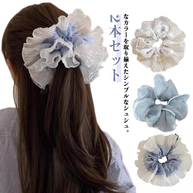 雑貨 大きい 大ぶり フォーマル 2本セット シュシュ シフォン 大人 ひらひら かわいい オフィス ふんわり 大振り ヘアアクセ ヘアゴム おしゃれ カジュアル 誕生日 プレゼント 母の日 かわいい おしゃれ プレゼント