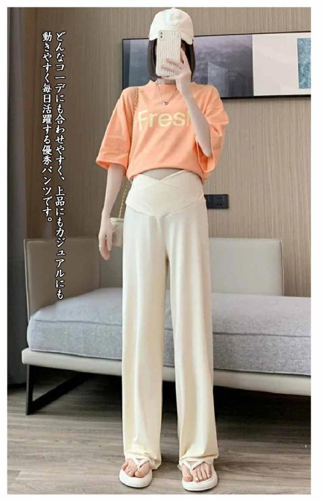 | 妊娠中でもおしゃれを楽しみたい-そんなお悩みを持つママさんにおすすめ! 肌触りがよく、伸縮性のある素材で毎日変化するお腹に対応。 ゆるっと履けるワイドシルエットが魅カ。 どんなコ一デにも合わせやすく、上品にもカジュアルにも 動きやすく毎日活躍する優秀パンツです。 | |