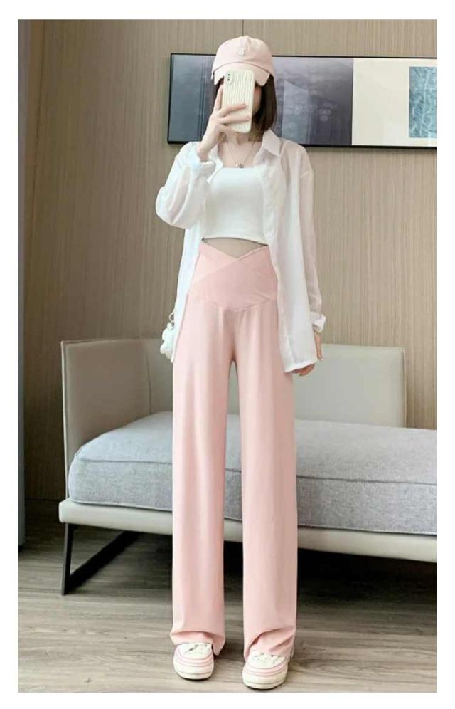 夏服 リブ ワイドパンツ ワイドパンツ ズボン 日焼け止め 春夏 薄手 脚長 マタニティ パンツ 無地 美脚 接触冷感 ずぼん レディース 長ズボン マタニティー マタニティズボン ボトムス 大きい マタニティ マタニティパンツ
