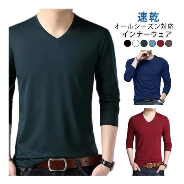 冷感インナー 長袖 メンズ インナー Vネック インナーシャツ Tシャツ 防臭トップス 接触冷感 薄手 肌着 長袖V首 長袖Vネック 防菌 冬物 アンダーシャツ 冬 暖 保温 速乾 スポーツ 下着 肌着