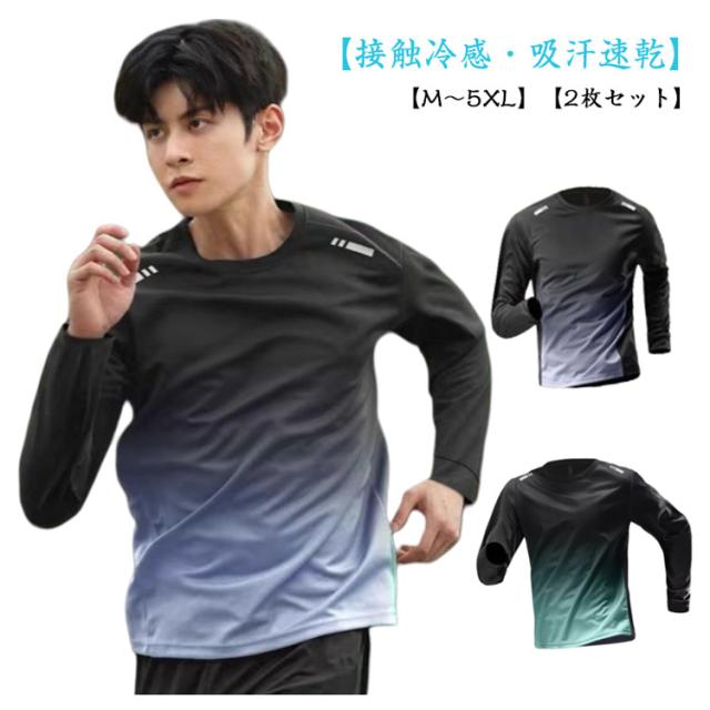 長袖 日よけ 夏用 スポーツウェア tシャツ 吸汗速乾 涼しい 接触冷感 長袖tシャツ メンズ ロンt グラデーション ウォーキング 肌着 uvカット 【2枚セット】薄手tシャツ ロンT ラッシュガード 大きいサイズ 長そで アンダーシャツ