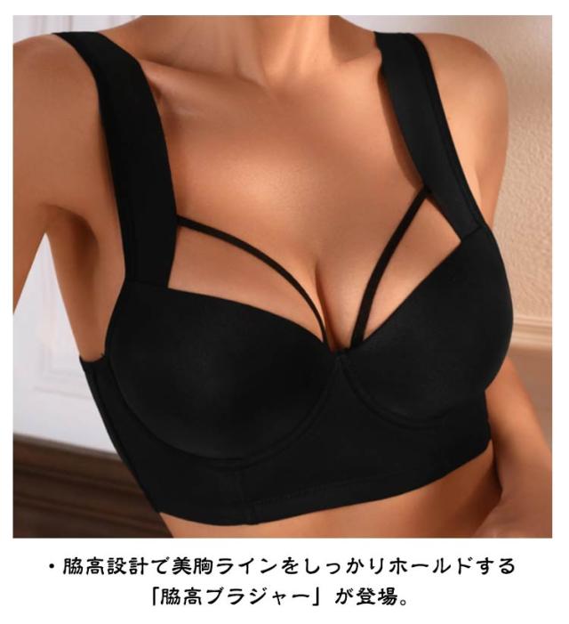 | ・上胸ふっくら、脇すっきり ・脇高設計で美胸ラインをしっかりホールドする「脇高ブラジャー」が登場。 | |