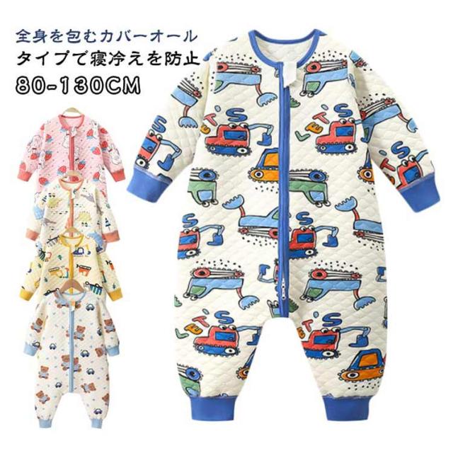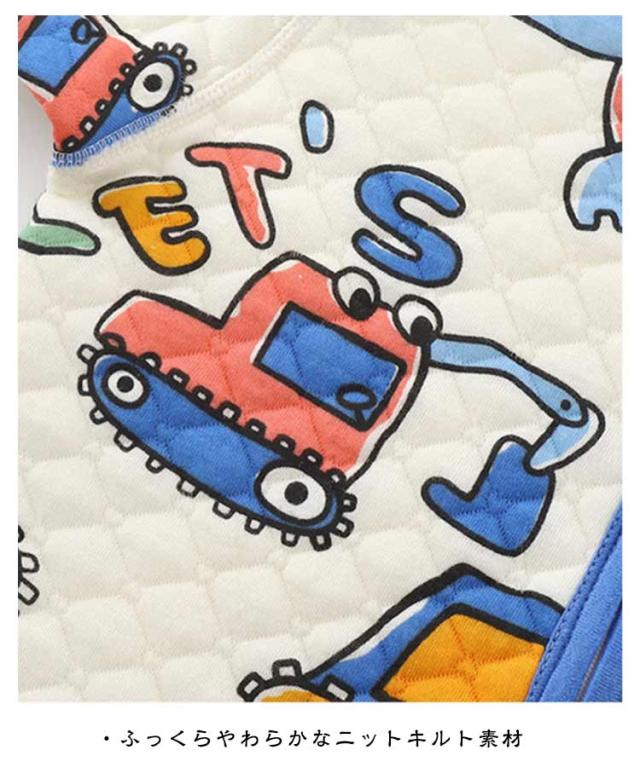 キッズ カバーオール 下着 パジャマ ルームウェア ジップアップ 長袖 子ども ロンパース 中綿 男の子 女の子 綿 コットン ボディスーツ ロンパース 肌着 保育園 キルト ベビー服 子供服 秋