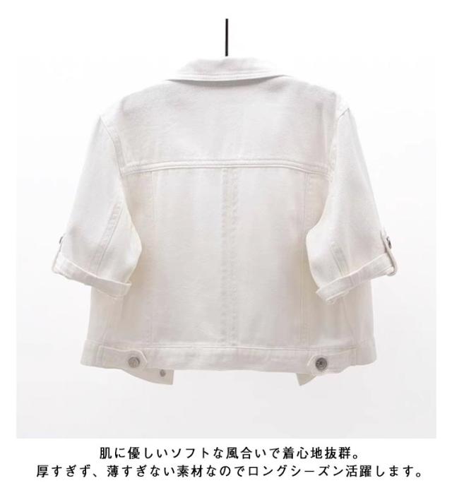 普段着 体型カバー ジージャン デニムジャケット ショート丈 春 ジャケット 着回し ブルゾン 秋 デニムジャケット 合わせやすい 通学 アウター お出かけ 旅行 7分袖デニムジャケット 春服 秋服 シンプル おしゃれ カジュアル 20代 30代 40代