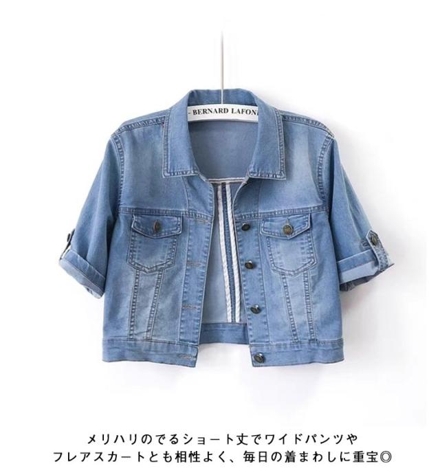 | S-3XLサイズ! 手首を華奢に見せる半袖デニムジャケット。 胸ポケットや金属ボタンなどのディテールにこだわりました。 肌に優しいソフトな風合いで着心地抜群。 厚すぎず、薄すぎない素材なのでロングシーズン活躍します。 スタイルもよく見せてくれるコンパクトなシルエットだから、カジュアルすぎるitemが苦手な方にもオススメ。 メリハリのでるショート丈でワイドパンツやフレアスカートとも相性よく、毎日の着まわしに重宝◎ | |