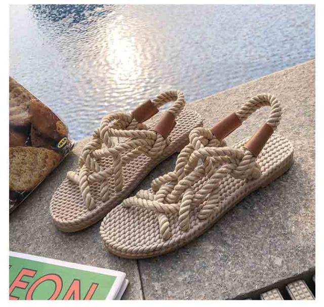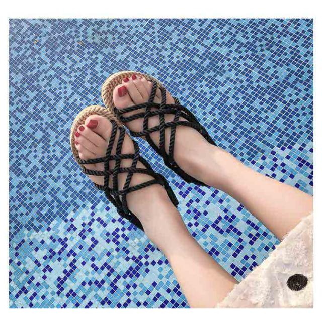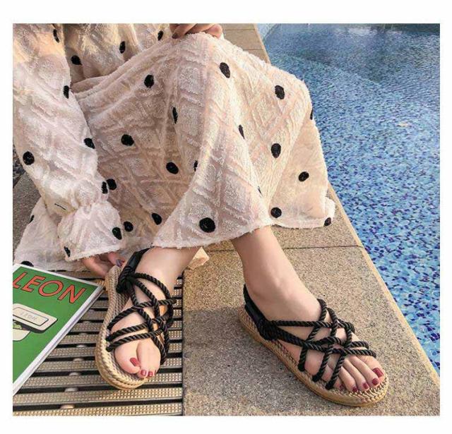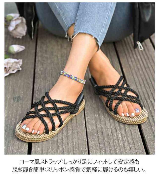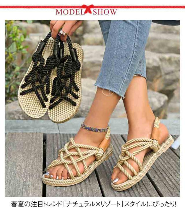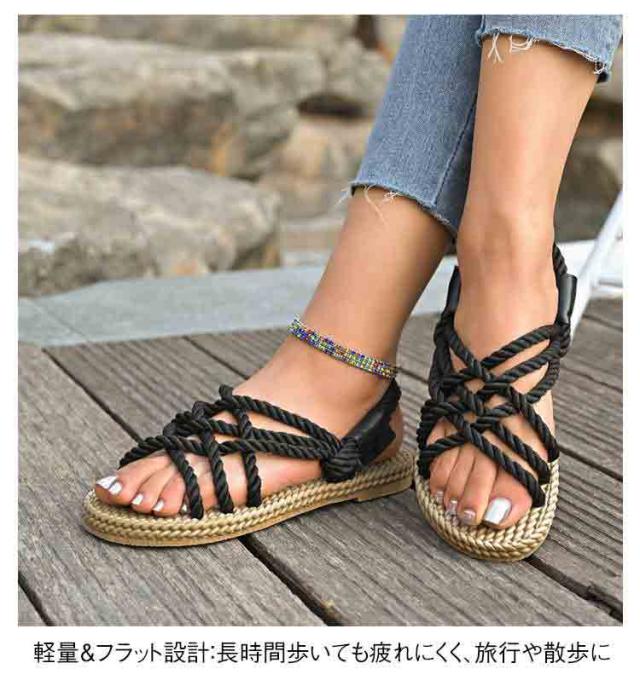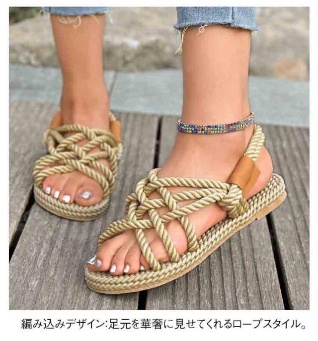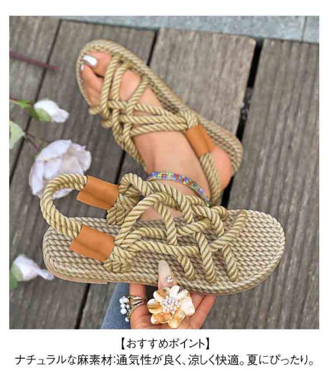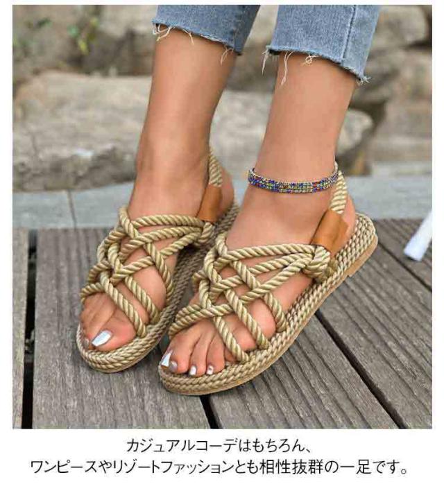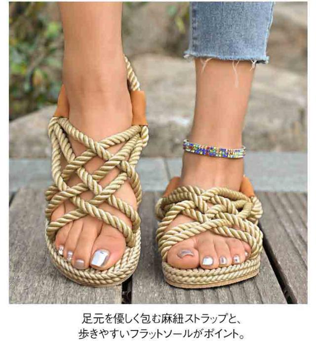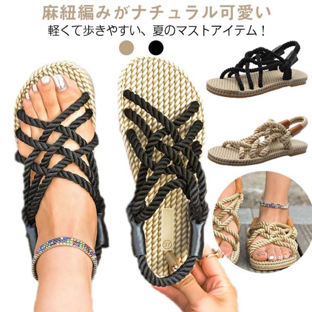 レディース サンダル 夏用 ジュートサンダル 麻紐 サンダル 編み ロープサンダル ビーチサンダル 海 リゾート ナチュラル カジュアル サマーシューズ 軽量 歩きやすい