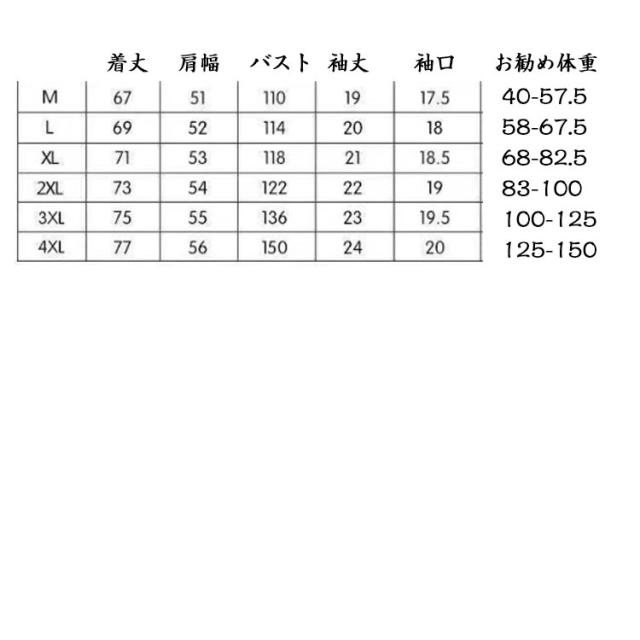 | サイズ | M L XL 2XL 3XL 4XL |