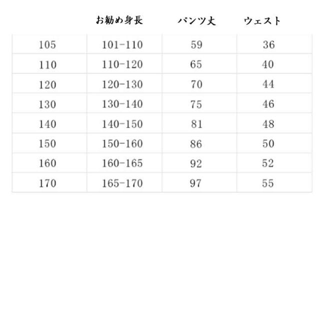 | サイズ | 105cm 110cm 120cm 130cm 140cm 150cm 160cm 170cm |