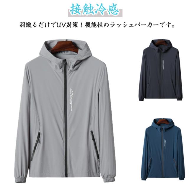 ラッシュパーカー メンズ ジップアップ 長袖 パーカー ラッシュガード UVカット 水着 軽量 接触冷感 アウター 大きいサイズ フード付き 釣り 日焼け対策 紫外線カット 速乾性 通気性 アウトドア