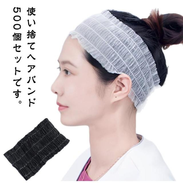 髪染め ヘッドバンド 500個入 不織布 伸縮性 ヘアターバン メイク 個包装 ホテル ヘアバンド 業務用 ヘアキャップ 化粧 エステターバン 使い捨て 業務用 髪用 お風呂 洗顔 エステ用品 使い捨て ヘアバンド スパ サロン 美容院 旅行 入浴用 不織布 黒 白