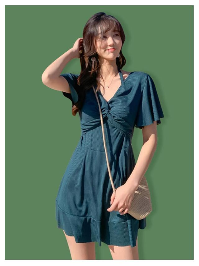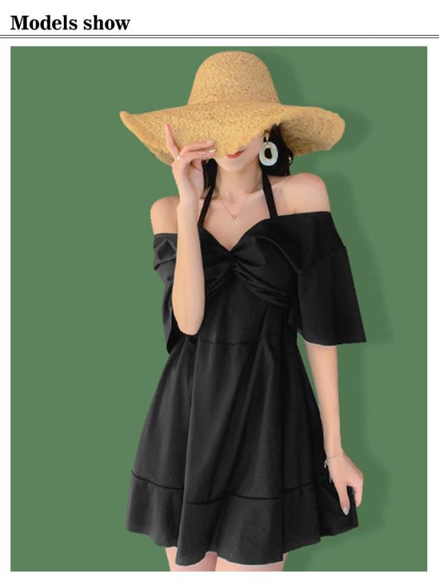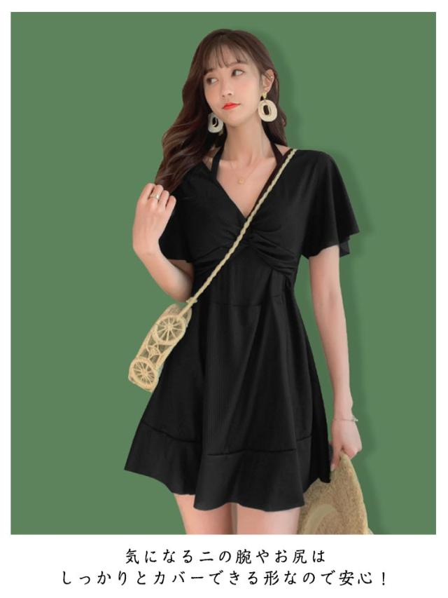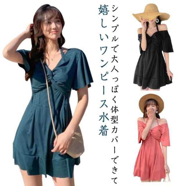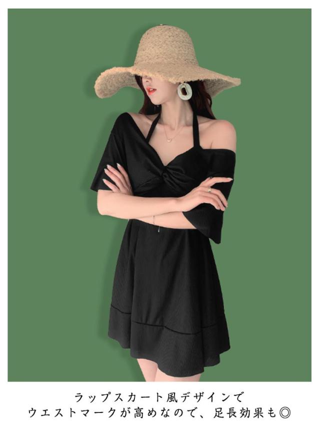 | シンプルで大人っぽく体型カバーできて嬉しいワンピース水着。 気になる二の腕やお尻はしっかりとカバーできる形なので安心! ラップスカート風デザインでウエストマークが高めなので、足長効果も◎ Vネックデザインで首周りはすっきりとして見えます。 スカートの下はパンツタイプになっているので露出部分が少ないデザイン。 ストレッチ、紫外線カット生地なので脱ぎ着しやすく、日焼けや紫外線対策にぴったりです。 リゾート、温泉、プール、海、川などのレジャーまで幅広くご使用いただけます。 取り外し可能な胸パット付き. | |