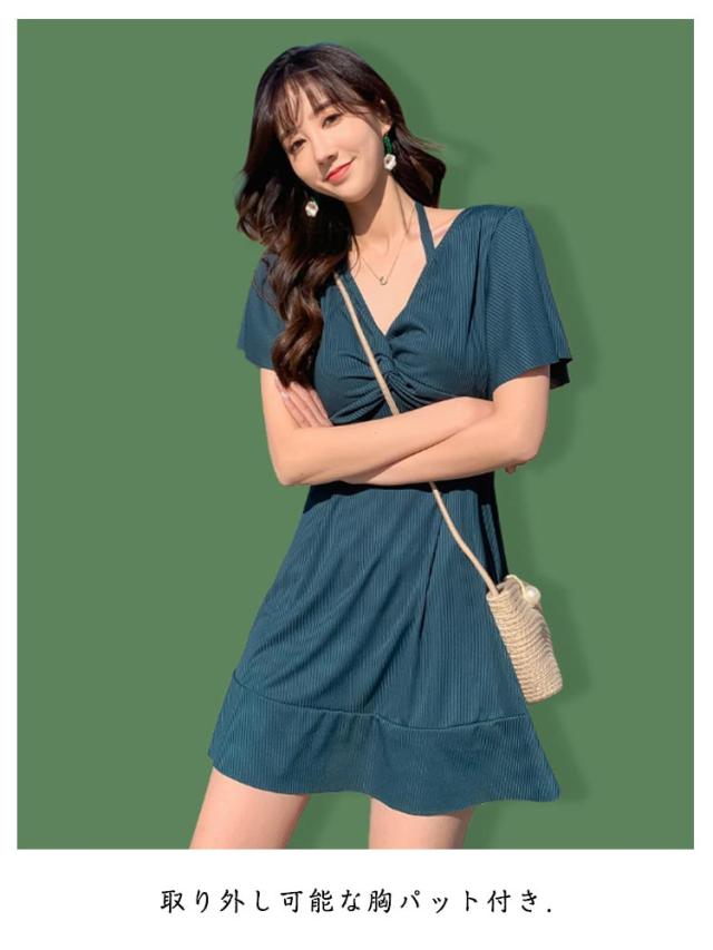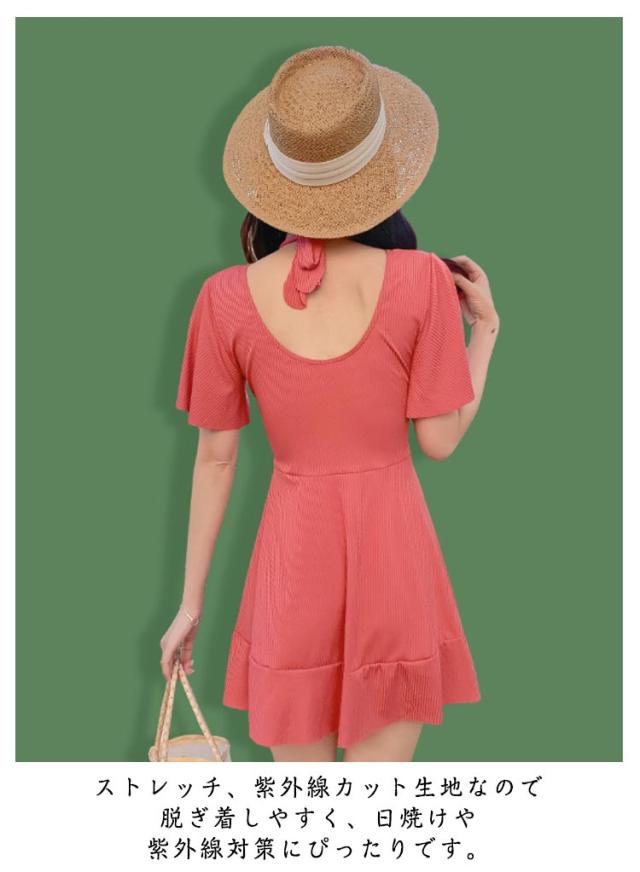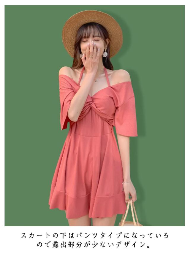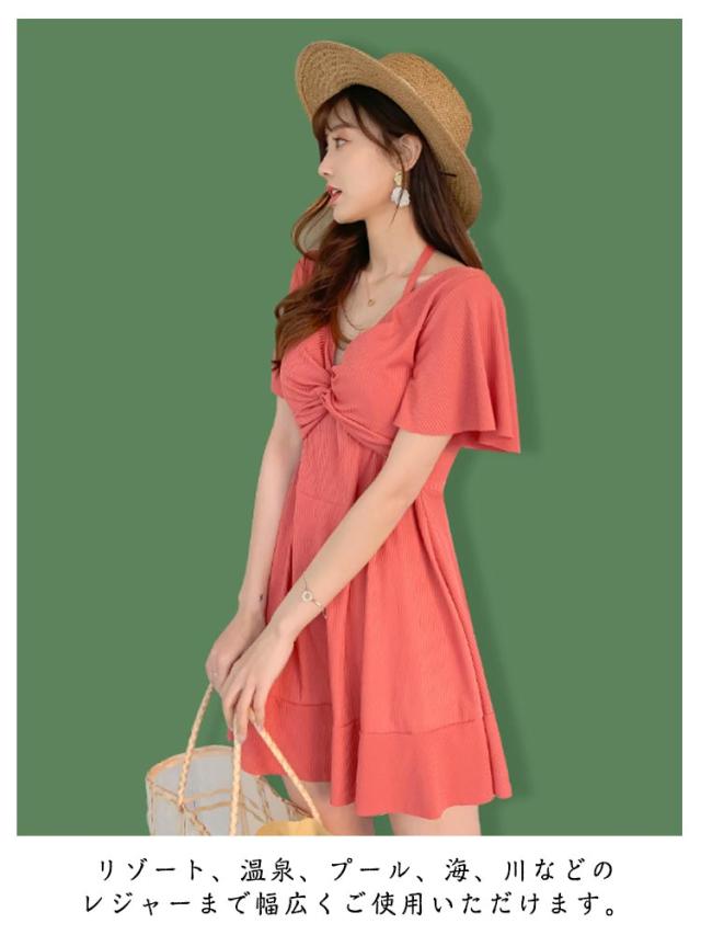 大人 フリル セパレート リボン付き 水着 タンキニ ハーフパンツ レディース ワンピース 水着 露出控えめ 体型カバー 小胸 水着 可愛い ママ水着 20代 30代 40代 50代 ワンピース水着 UVカット 温泉 プール 海水浴 水遊び
