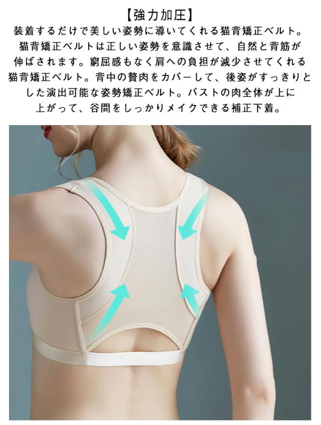 | バックメッシュで通気性抜群の猫背矯正ベルト。目立たないデザインで夏場で大活躍!【女性用】 【強力加圧】装着するだけで美しい姿勢に導いてくれる猫背矯正ベルト。猫背矯正ベルトは正しい姿勢を意識させて、自然と背筋が伸ばされます。窮屈感もなく肩への負担が減少させてくれる猫背矯正ベルト。背中の贅肉をカバーして、後姿がすっきりとした演出可能な姿勢矯正ベルト。バストの肉全体が上に上がって、谷間をしっかりメイクできる補正下着。 【脇肉スッキリと解消】脇高設計で、バストラインを整え、余分な脂肪を集めてバストアップさせてくれる姿勢矯正ベルト。ナチュラルで脇がすっきりして、きれいな後姿で一番自信を持てる猫背矯正ベルト。三列三段ホックが付いていて、脱着が簡単な上、矯正具合の微調整ができる姿勢矯正ベルト。伸縮する猫背矯正ベルトが無理なく肩を後ろに引いてくれるように、補正の強さを調整できる補正下着。初心者にも装着しやすい猫背矯正ベルト。 【美しい姿勢へ】柔らかい素材が使われていて、ストレスフリー長時間着用できる猫背矯正ベルト。肩をサポート猫背矯正ベルトだけでなく、脇肉をしっかりとバストに集めて寄せることができます。胸周りの肉をしっかりホールドする安定感があり、同時に背筋が伸びて姿勢を良くすることができる猫背矯正ベルト。ゆったりとした着け心地で、お胸を下から支えて持ち上げてくれる姿勢矯正ベルト。 【ソフトな着け心地】通気性に優れた素材なので長時間着用しても蒸れにくく快適な着け心地を楽しめる猫背矯正ベルト。ストレッチ性に優れた生地を採用しており、自由に伸びれ、装着も簡単な猫背矯正ベルト。伸縮性のあるゴムの力で肩を後ろに引き、背筋を伸ばしてくれる姿勢矯正ベルト。正しい姿勢の習慣化で理想的な美しい姿勢へ補正できる猫背矯正ベルト。自分に合ったフィット感で締めつけが調整できる補正下着。 【簡単に脱着】肩を後ろに引くような力が加わるので、自然と胸が開く姿勢をキープしてくれる姿勢矯正ベルト。ブラジャーに一体化している補正インナー。装着していても目立たず、動きやすい背筋サポートベルト。洋服やシャツなどのタイツを着いても、柔らかいけれど美しいボディラインになる猫背矯正ベルト。サイズが合っていると適切な姿勢矯正ができる猫背矯正ベルト。誰でも簡単に装着できます。 | |