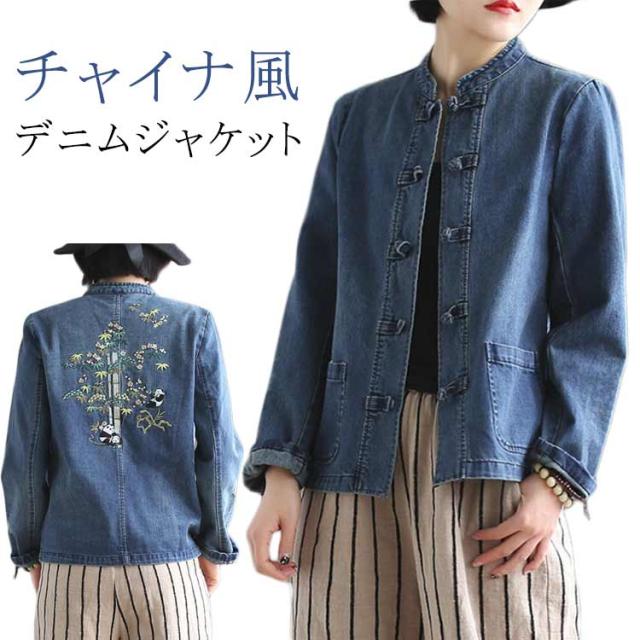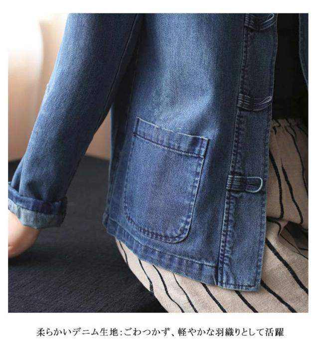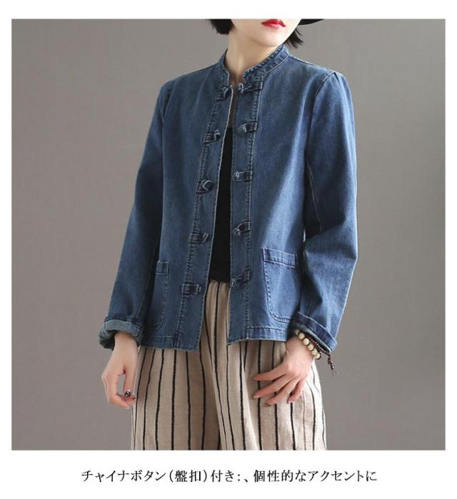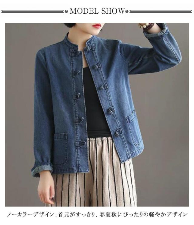 チャイナ風 レディース おしゃれ ジーンズ 秋 アウター デニム Gジャン 羽織り ノーカラー 春 婦人服 大人カジュアル きれいめ デニム オールシーズン 大きいサイズ S-4XL 30代 40代