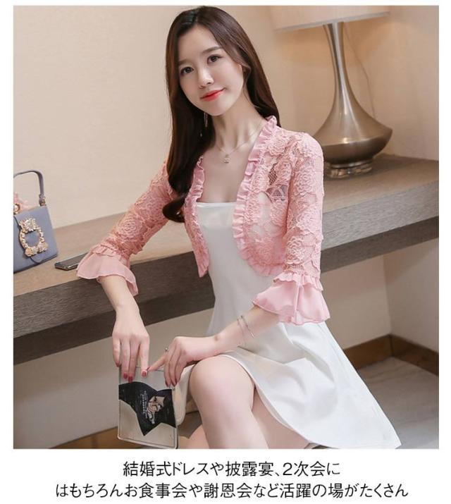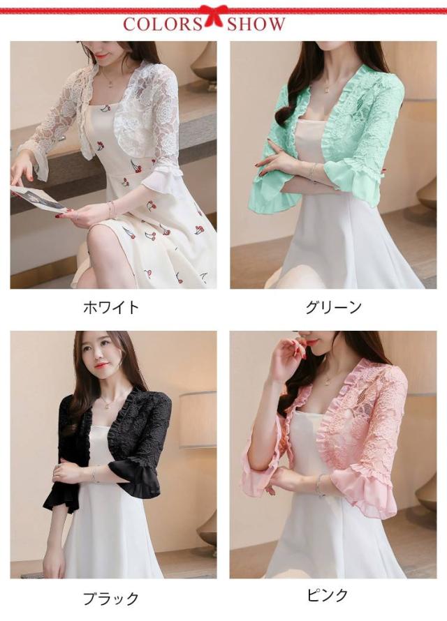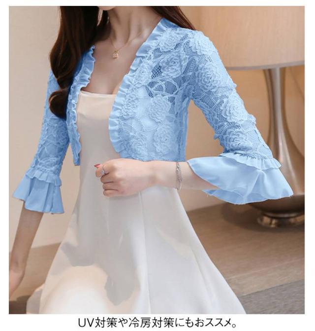 ジャケット ボレロ 七分袖 総レース 羽織 大人 レースボレロ サマーカーディガン レディース レースカーディガン 透け感 カーディガン パーティー 結婚式 レース 上品 20代30代40代 春 夏