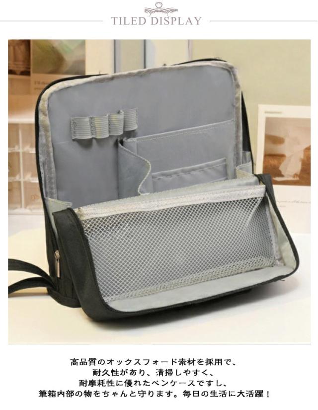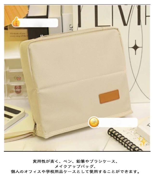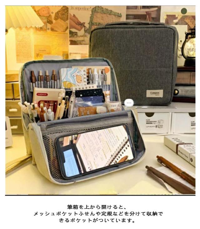 | 大容量ペンケース 手帳収納 自立タイプ 取っ手付き 高品質のオックスフォード素材を採用で、耐久性があり、清掃しやすく、耐摩耗性に優れたペンケースですし、筆箱内部の物をちゃんと守ります。毎日の生活に大活躍! たっぷり入る大容量 大収納ペンケースは、伸縮性のあるループと複数のコンパートメントを備えた複雑な内装で、最大50本のペンや鉛筆、ハサミや付箋、ゴムやテープまで簡単に収納・整理することが可能です。 そのユニークな形状のおかげで、電卓や定規、ホッチキスを収納することができます。 ※収容数はペンの種類によって異なります。 メインファスナーがぐるりと大きく開くので、必要なものをスマートに取り出すことができ、ファスナーには引き手がついているので開閉しやすくなっています。 ぺんホルダーがあるので、普段よく使うペンと、その他のカラーペンなどを分けて収納できます。 筆箱を上から開けると、メッシュポケットふせんや定規などを分けて収納できるポケットがついています。 筆記具などと分けて収容できるので、小物が探しやすく汚れにくいので安心です。筆記用具入れとしてだけでなく、他の用途にも使えます。 実用性が高く、ペン、鉛筆やブラシケース、メイクアップバッグ、個人のオフィスや学校用品ケースとして使用することができます。 | |