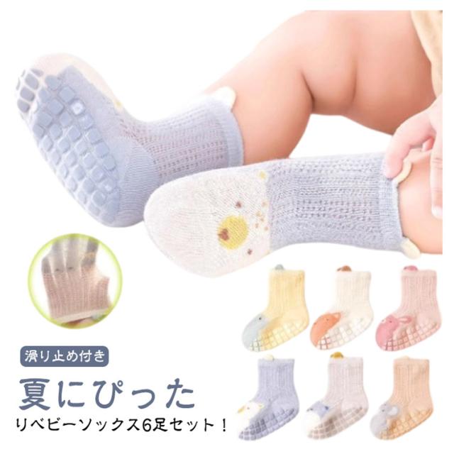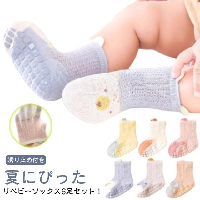 滑り止め付き メッシュソックス 子供 【6足セット】 ベビーソックス メッシュ キッズ ベビー服 夏用 靴下 ショートソックス 男の子 ルームソックス 赤ちゃん くつ下 薄手 女の子 快適 新入園 綿 可愛い 涼しげ クリスマス プレゼント 幼稚園 通園 通気