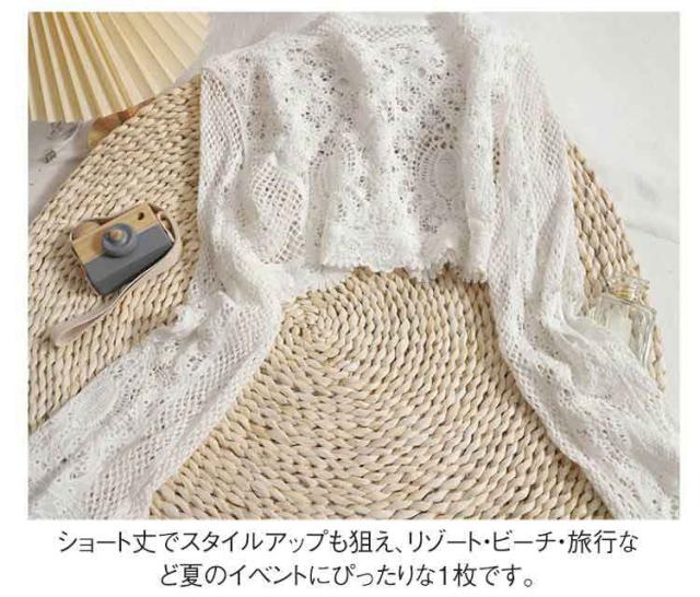 サマーカーディガン 透かし編みトップス おしゃれ 日焼け対策 かぎ編み ショート丈 長袖 カーディガン リゾート 羽織り ビーチコーデ ボヘミアン風 夏新作 ボヘミアン風 可愛い