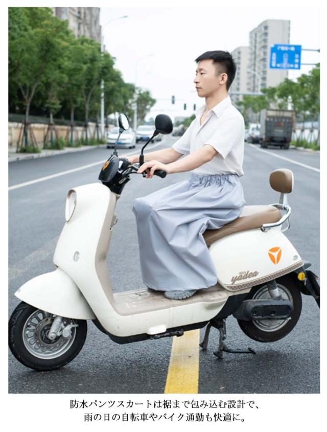 | 撥水加工で水を弾き、内部まで濡れません。 雨の日の通勤・通学をしっかりガードします。 丈夫で防水性に優れたオックスフォード素材を採用し、急な雨でもしっかりガード。 裾はボタンで調節可能、腰は伸縮性ゴム入りで身体にフィットし風の侵入も防止。 軽量で折り畳み可能なため、カバンやバイクの荷台に常備可能。突然の雨にもすぐに対応できます。 防水パンツスカートは裾まで包み込む設計で、雨の日の自転車やバイク通勤も快適に。 男女問わず使え、自転車やバイクでの通勤、通学はもちろん、アウトドアや急な雨対策にも最適。 防風・防寒効果もあり、春の雨から冬の冷たい雨まで季節を問わず活躍します。 | |